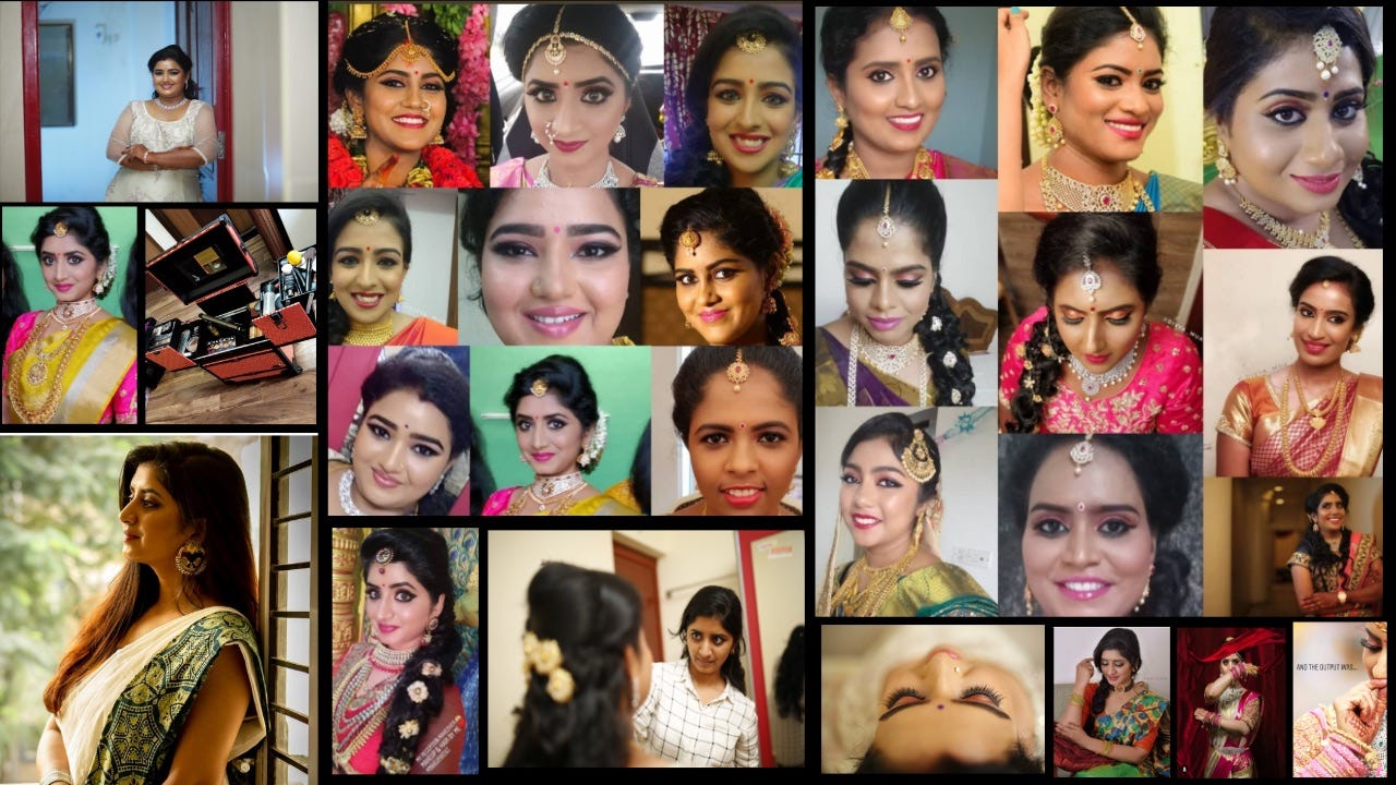 This line of work has the craziest of timings. I remember her coming in 2:30 AM in the morning to my muhurtham makeup to my place and then swinging by the temple where my wedding was taking place to give me a second costume change, calmly waiting for me from 4:00 PM at my reception venue and then rushing back to her full-time job around 7:30 PM after my make-up session,