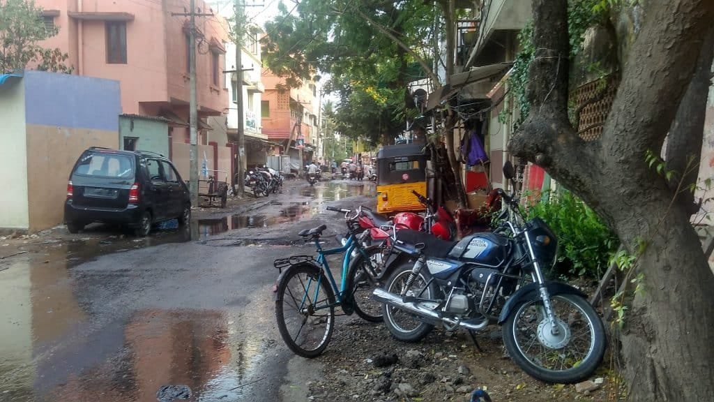 This is not the water from up above, this is the water from down below. Nothing has changed since December’s flood in Velachery. When all other places where filled with rainwater, my area was submerged with sewage water that started bubbling out as soon as the first batch of rains hit the ground. This is the story ever since. Our sewages start overflowing whenever it feels under the weather. The sewage system is blocked for over ten days now. Complaint has been lodged, but no action so far from the officials concerned. Bathrooms are flooded, and to prevent further damage nearby apartments pump out the excess water on a daily basis onto the roads. That is the scene you see in the picture above. The dirty water pumped out, floods the roads without any proper channel for release. People walk on these roads on a daily basis, and our doctors are super busy with the increasing number of skin infections and fever cases.